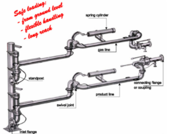 在地面上操作鶴管,操作員的安全得到保證,不像站在車輛頂部操作時常有跌落的危險;連接更迅速,因此減少了整體裝卸時間;底部鶴管可以減小槽車中的沖擊,降低產生靜電的危險;底部裝卸系統(tǒng)能容易地完全回收在裝卸過程中產生的蒸汽;裝卸速度快是裝料站罐車底部裝卸系統(tǒng)的主要優(yōu)點,因為多節(jié)車廂可以同時裝卸,因此罐車能很快被裝滿;底部基島的修建比頂部裝卸架更簡單、便宜;高效底部鶴管規(guī)格齊全,能有效裝卸石油產品、化學產品、液化氣以及食品等。