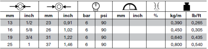 ■蒸汽管6bar(90 psi)-熱水管15bar(225 psi) FDA ■內(nèi)膠層:白色食品級(jí)EPDM ■加強(qiáng)層:兩層高強(qiáng)度纖維線(xiàn) ■外膠層:白色或藍(lán)色EPDM-耐熱、耐磨損、耐臭氧 ■安全系數(shù):蒸汽10:1 水4:1 ■溫度范圍:-40℃~+165℃
