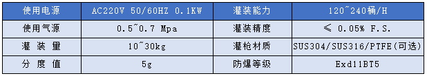 ◆不銹鋼SUS304機體及稱重臺面;灌槍及過流管路采用不銹鋼SUS316L+PTFE密封;電控箱整體鑄鋁烤漆(防爆級),防爆玻璃視窗;