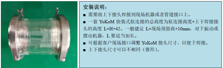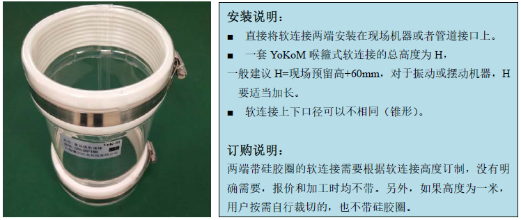 粉體軟連接廣泛用于粉體輸送系統(tǒng)中,相對于機器設(shè)備或者系統(tǒng)來說,其價值并不高。然而其對系統(tǒng)的安全穩(wěn)定運行卻起著十分重要的作用,輕則導致粉塵泄漏污染、產(chǎn)品損失,重則引起設(shè)備停機甚至發(fā)生靜電危害導致嚴重后果。TPU透明軟連接以其食品級、耐磨耐撕裂、透明可觀察、密封嚴實不漏料、使用壽命長等特性應(yīng)用在粉料輸送管道、振動篩、料倉、螺旋輸送器、稱重單元等設(shè)備系統(tǒng)上,涉及食品制藥機械、粉體工程、食品工業(yè)、乳制品、香精香料、醫(yī)藥化工等行業(yè)。YokoM 軟連接包括快裝式、新型喉箍式和各種異形軟連接。